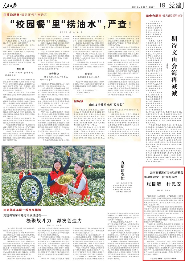 2025年4月22日,《人民日報》報道:云南省玉溪市紀檢監察機關推動村集體“三資”規范管理——賬目清 村民安。