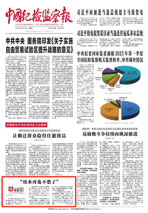 2025年4月22日,《中國紀檢監察報》頭版報道:“用水再也不愁了”。